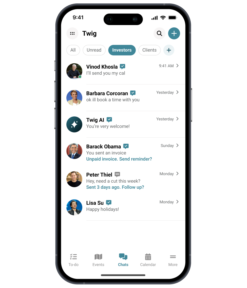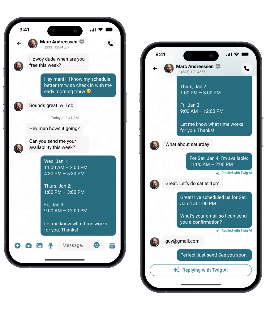 If your contacts are not using Twig, they’ll get an SMS, and Twig AI will handle the back-and-forth for you.